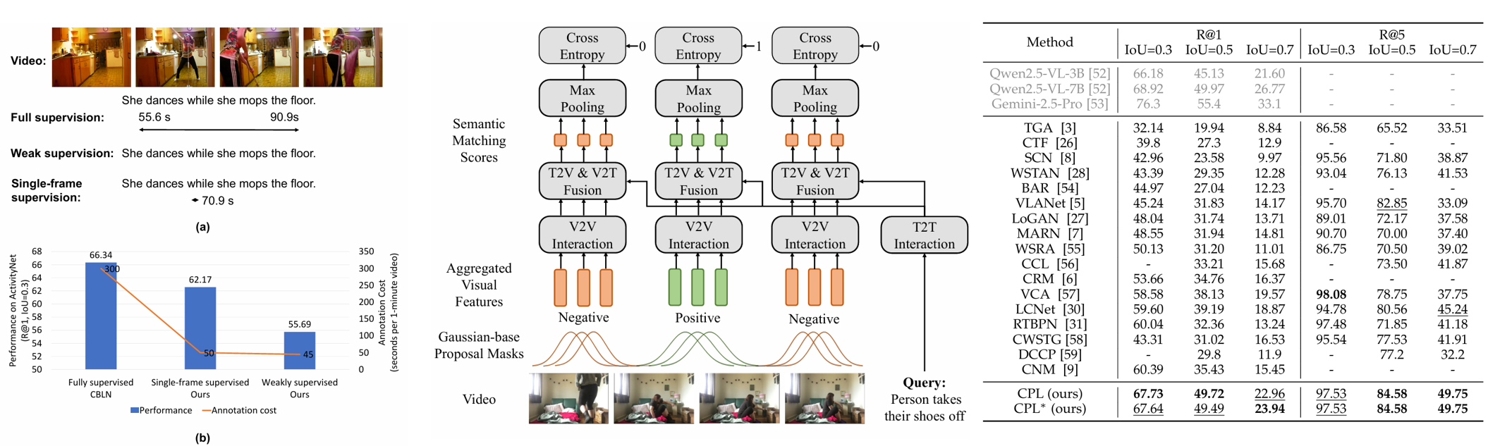 Temporal sentence grounding aims to localize moments corresponding to language queries from videos. As labeling the temporal boundaries is cumbersome and subjective, the weakly-supervised methods have received increasing attention. Most of the existing weakly-supervised methods generate proposals by sliding windows, which are content-independent and of low quality. Besides, they train their model to distinguish positive visual-language pairs from negative ones randomly collected from other videos, ignoring the highly confusing video segments within the same video. In this paper, we propose Contrastive Proposal Learning (CPL) to overcome the above limitations. Specifically, we use multiple learnable asymmetric Gaussian functions to generate both positive and negative proposals within the same video. Then, we propose a controllable, easy-to-hard negative proposal mining strategy to collect negative samples within the same video, which enables CPL to distinguish highly confusing scenes. Finally, we propose an extension of the proposal generation algorithm to explore the use of low-cost single-frame annotation and achieve a balance between annotation burden and grounding performance. Our CPL can be applied to both MIL-based and reconstruction-based mainstream frameworks and achieves state-of-the-art performance on Charades-STA, ActivityNet Captions, and DiDeMo datasets.